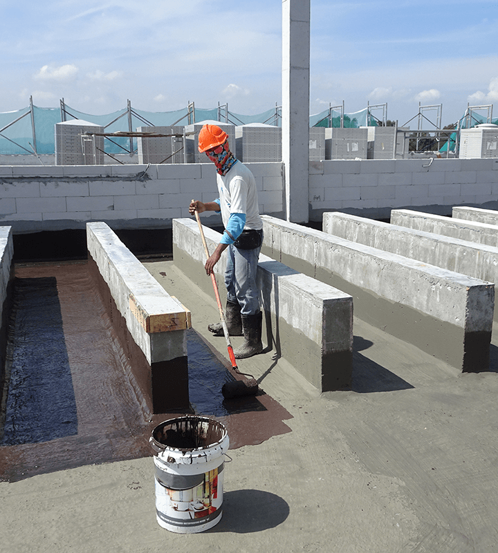 アスファルトを用いた防水工事です。